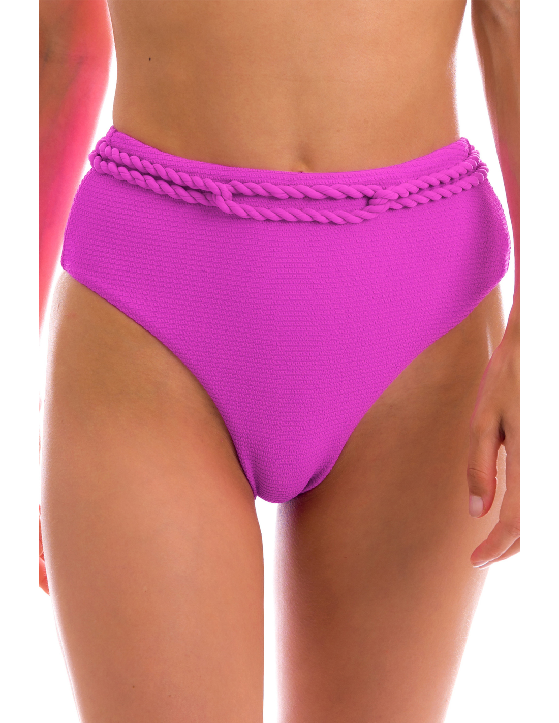 Description Magenta pink textured high waist bikini bottom with twisted rope - Bottom St-Tpz-Pink Hotpant-High Rio de Sol