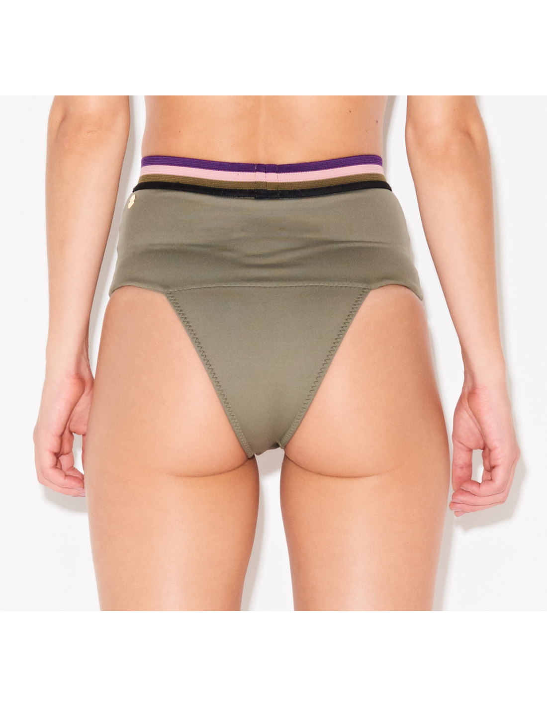 Description Khaki high waisted bikini bottom with elastic band - Bottom Band Verde Triya