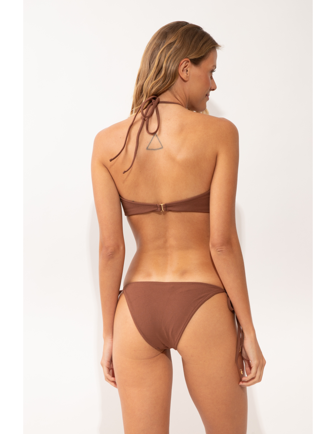 After each use, rinse the bikini in clear and not salty water. We always recommend hand washing. Never use strong detergents such as stain removers. Use products for delicate fabrics, a simple soap but preferably the special product intended for swimwear washing.