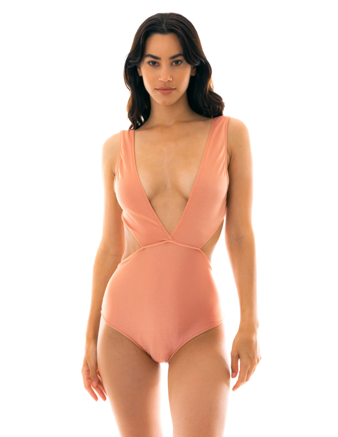 Description Plunging textured monokini - pink peach - Trikini Ouro Rosa Rio de Sol