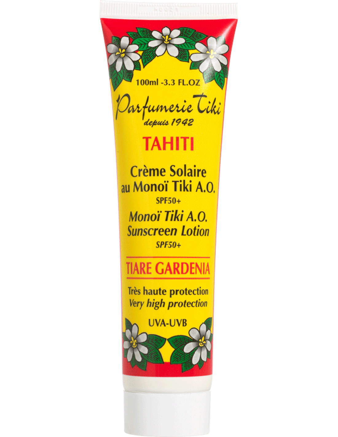 Description Sun cream protection factor 50, enriched with monoi from Tahiti - Tiki Creme Solaire Au Monoi Tiki Spf50+ 100Ml Tiki