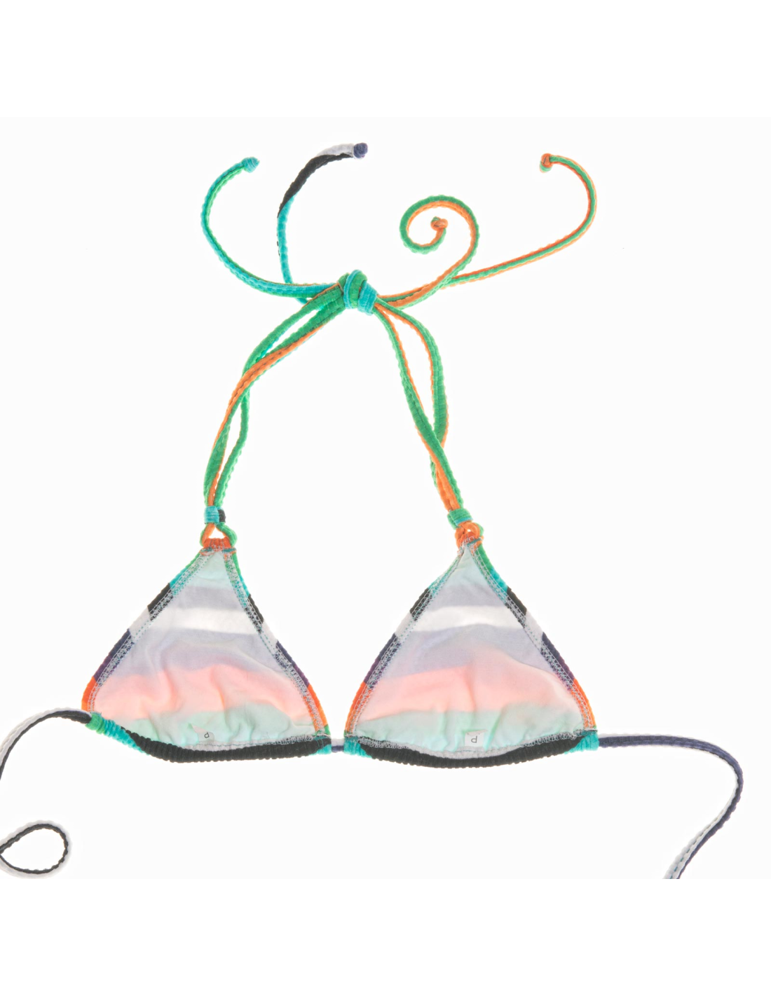 Description Multi-colored triangle bikini top with striped design and sliding halter neck ties - Soutien Tepego Rio de Sol