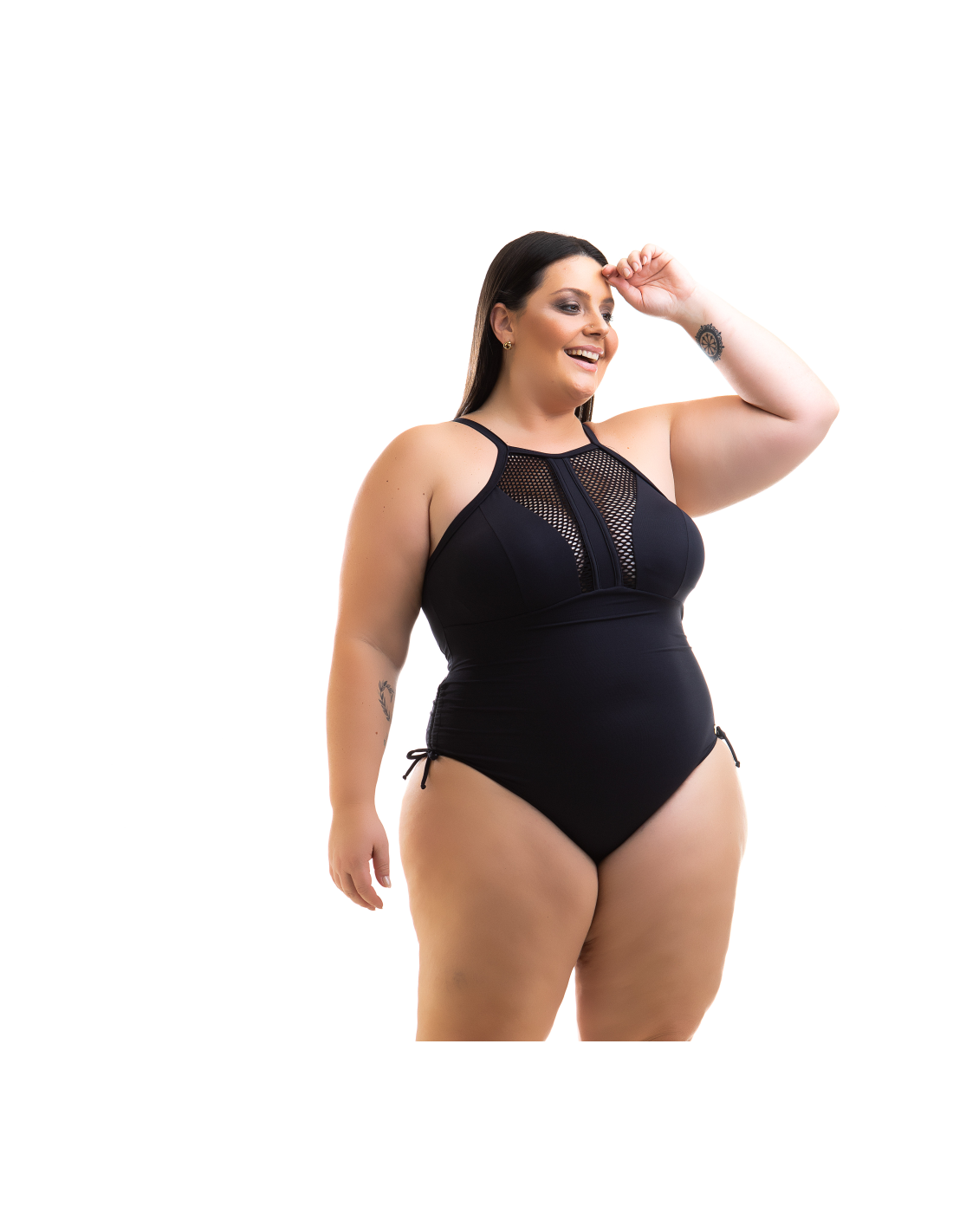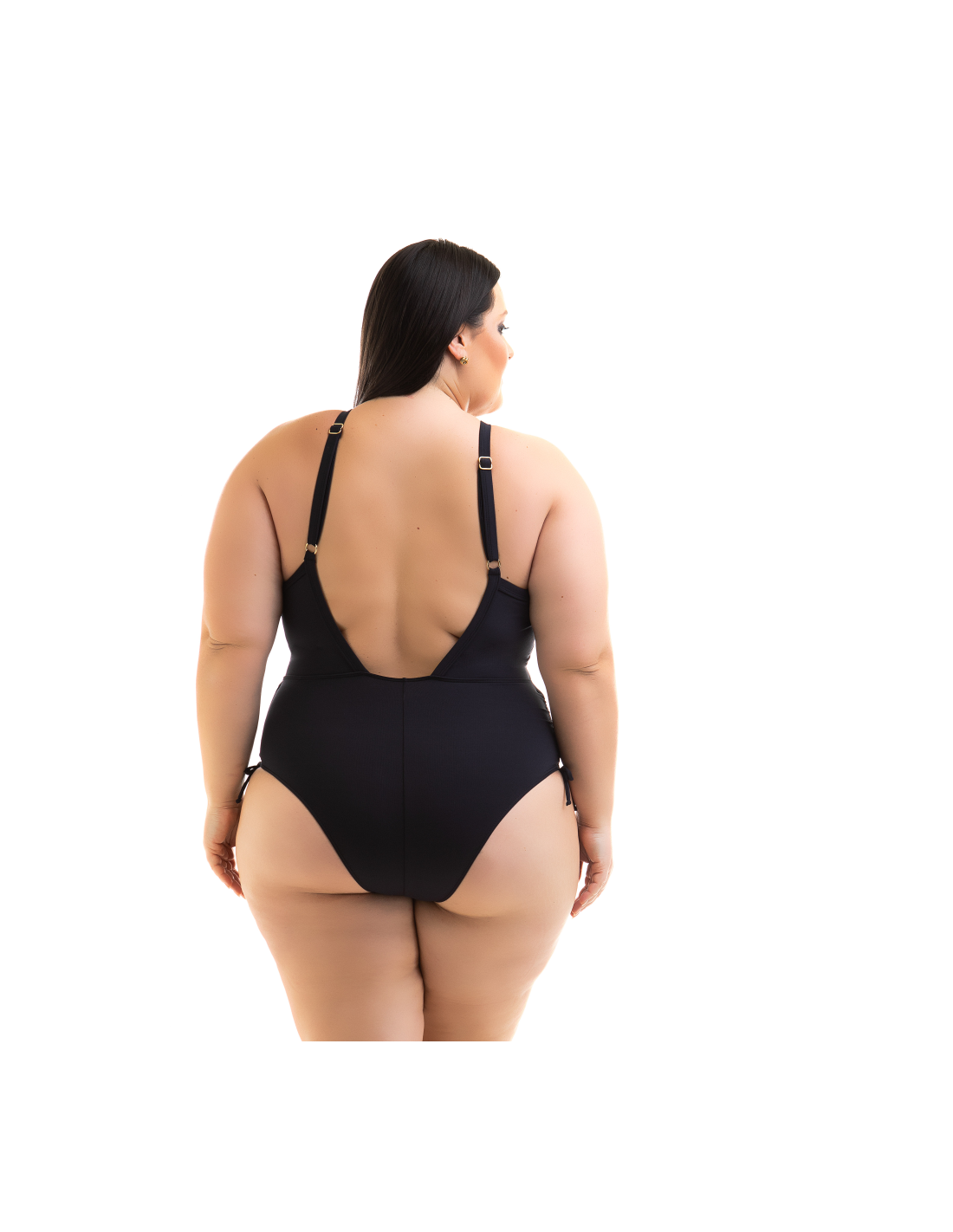 Descrizione Costume intero nero taglia grande con scollo traforato - Swimsuit Cleya Preto Acquarosa