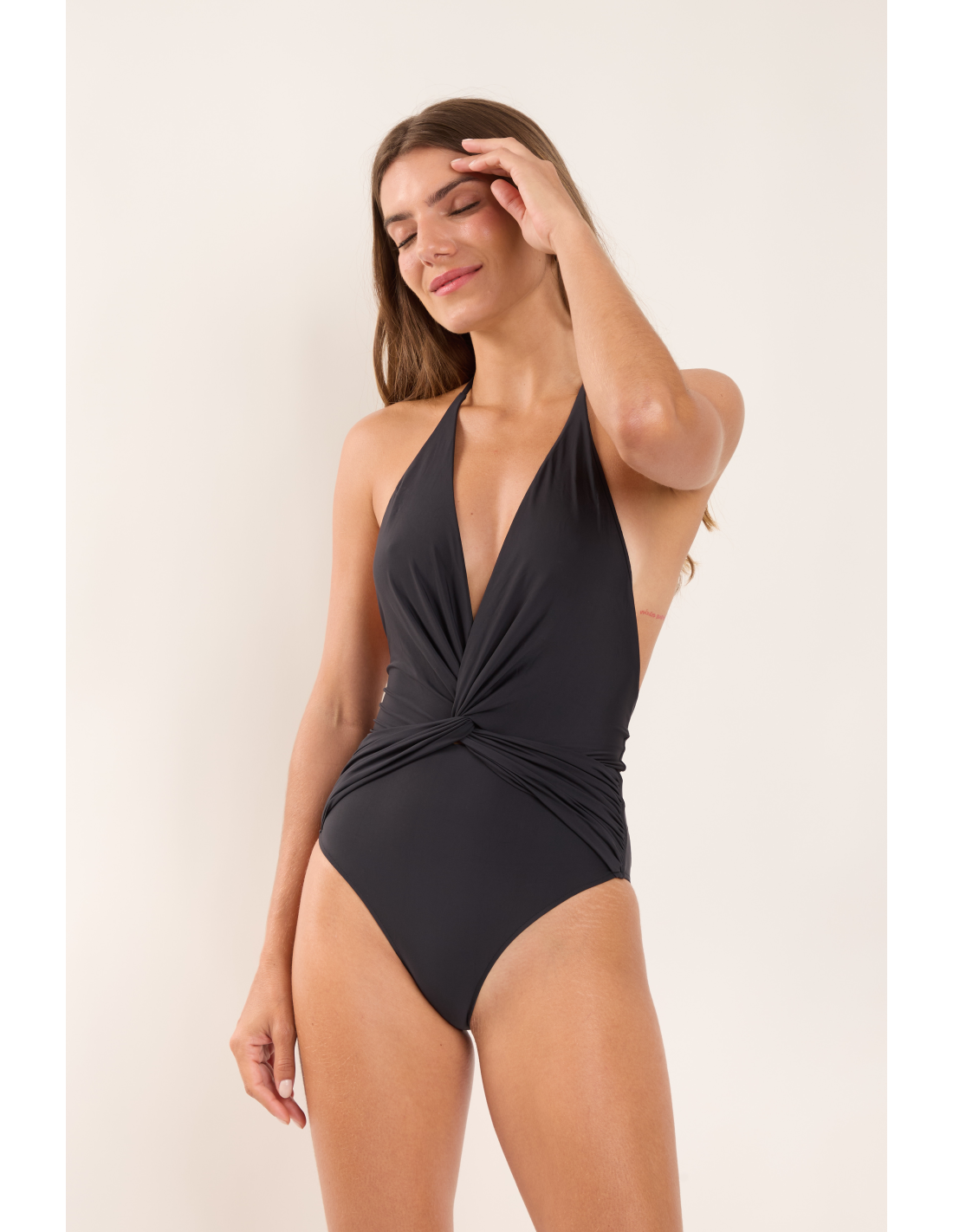 Claire is wearing a size S. Model's Measurements: Height 174cm, Bust: 89cm, Hips 95cm, Waist 61cm