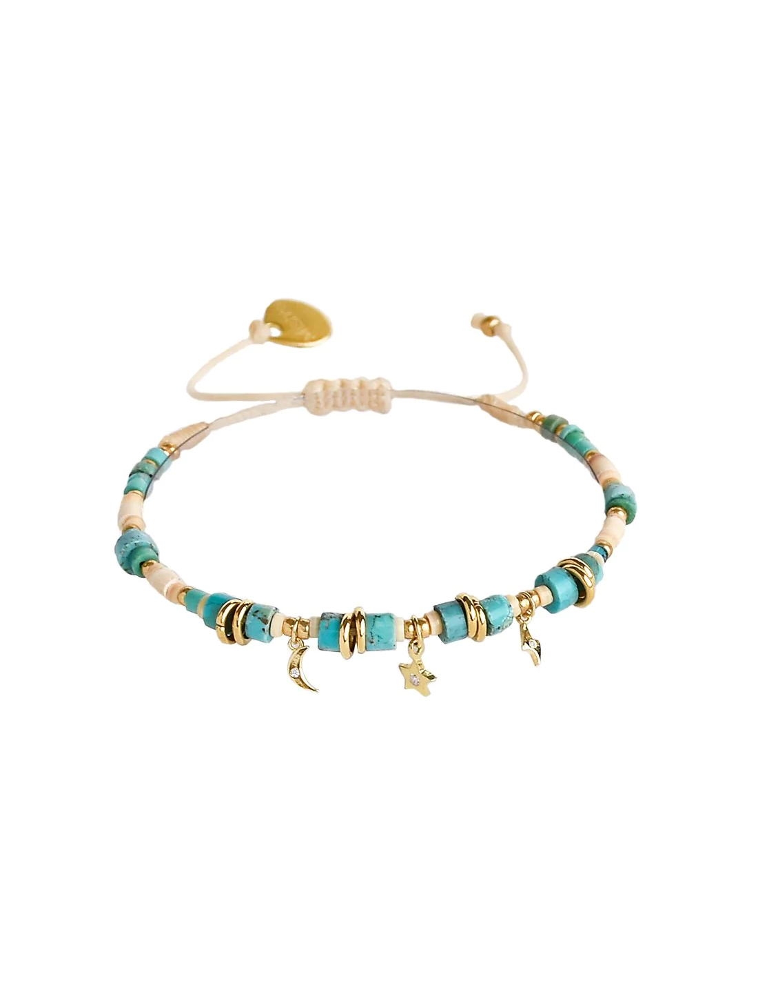 • Composition: Glass beads, round beads, polyester thread, italian thread, bronze gold plated Mishky logo